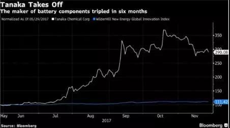 随着电池中金属利用的需求增加,包括日本的田中化学公司(Tanaka Chemical)等将受益,这些公司主要是生产和销售电池存储设备的组件。